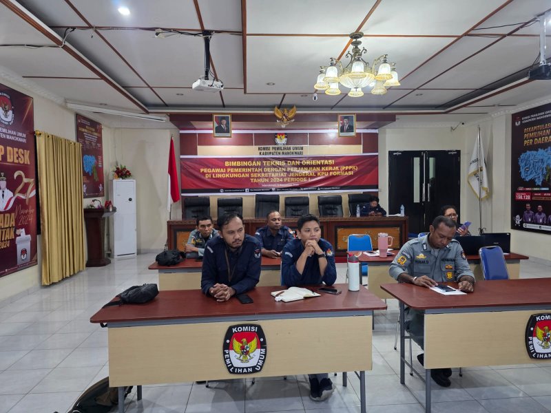 Manokwari - Sebanyak 8 (Delapan) orang Pegawai Pemerintah dengan Perjanjian Kerja (PPPK) di lingkungan Sekretariat KPU Kabupaten Manokwari mengikuti kegiatan Orientasi PPPK Formasi Tahun 2024 Periode I yang diselenggarakan oleh Komisi Pemilihan Umum Republik Indonesia bekerja sama dengan Lembaga Administrasi Negara (LAN) Republik Indonesia. Kegiatan orientasi ini dilaksanakan secara daring melalui skema Massive Open Online Course (MOOC) dengan media Zoom Meeting dan Portal Sibangkom LAN RI sesuai dengan jadwal pelaksanaan mulai tanggal 10-26 November 2025. Pelaksanaan orientasi ini bertujuan untuk memberikan pembekalan kepada seluruh Pegawai PPPK di lingkungan Sekretariat Jenderal KPU, khususnya Sekretariat KPU Kabupaten Manokwari dalam rangka meningkatkan kompetensi, memperluas wawasan kebangsaan serta menanamkan nilai-nilai dasar Aparatur Sipil Negara (ASN). Melalui kegiatan ini, diharapkan seluruh peserta orientasi dapat menjadi aparatur yang berintegritas, profesional, netral dan berkomitmen dalam mendukung penyelenggaraan Pemilu dan Pemilihan yang berkualitas serta berintegritas. ....