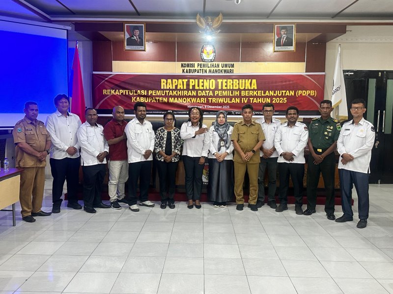 KOMISI PEMILIHAN UMUM KABUPATEN MANOKWARI GELAR RAPAT PLENO TERBUKA PENETAPAN REKAPITULASI PEMUTAKHIRAN DATA PEMILIH BERKELANJUTAN TRIWULAN IV TAHUN 2025