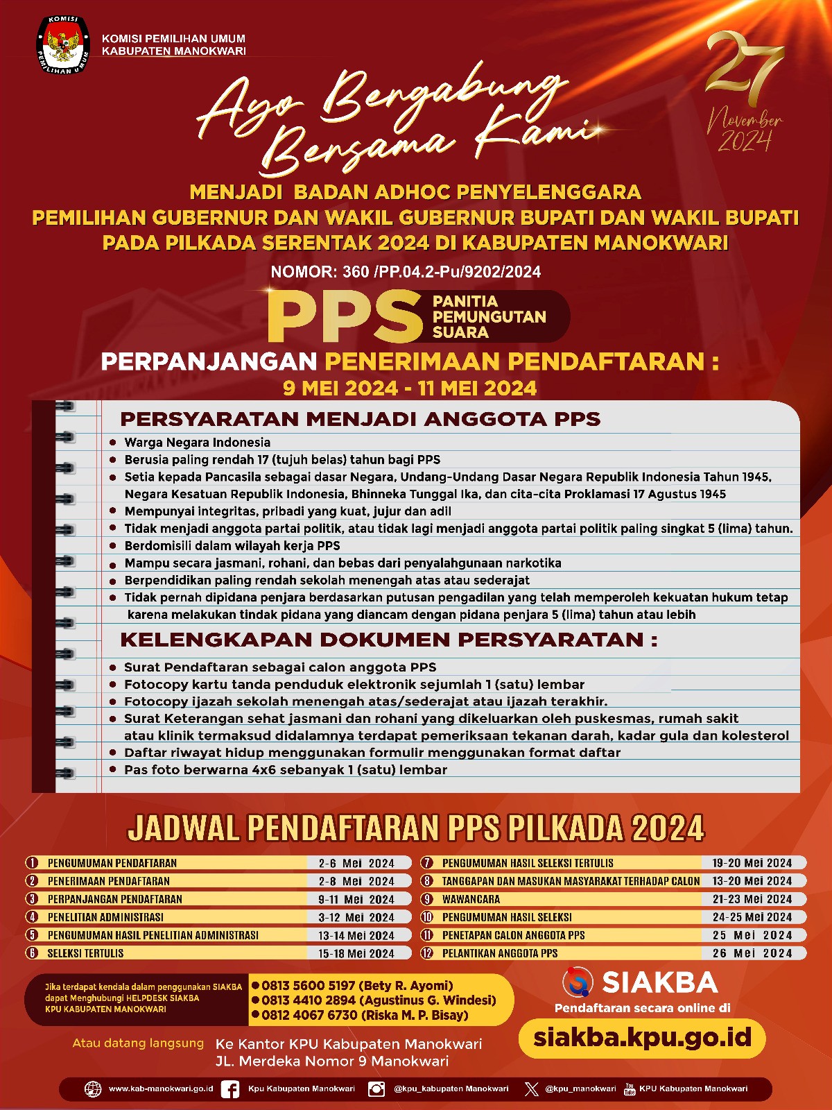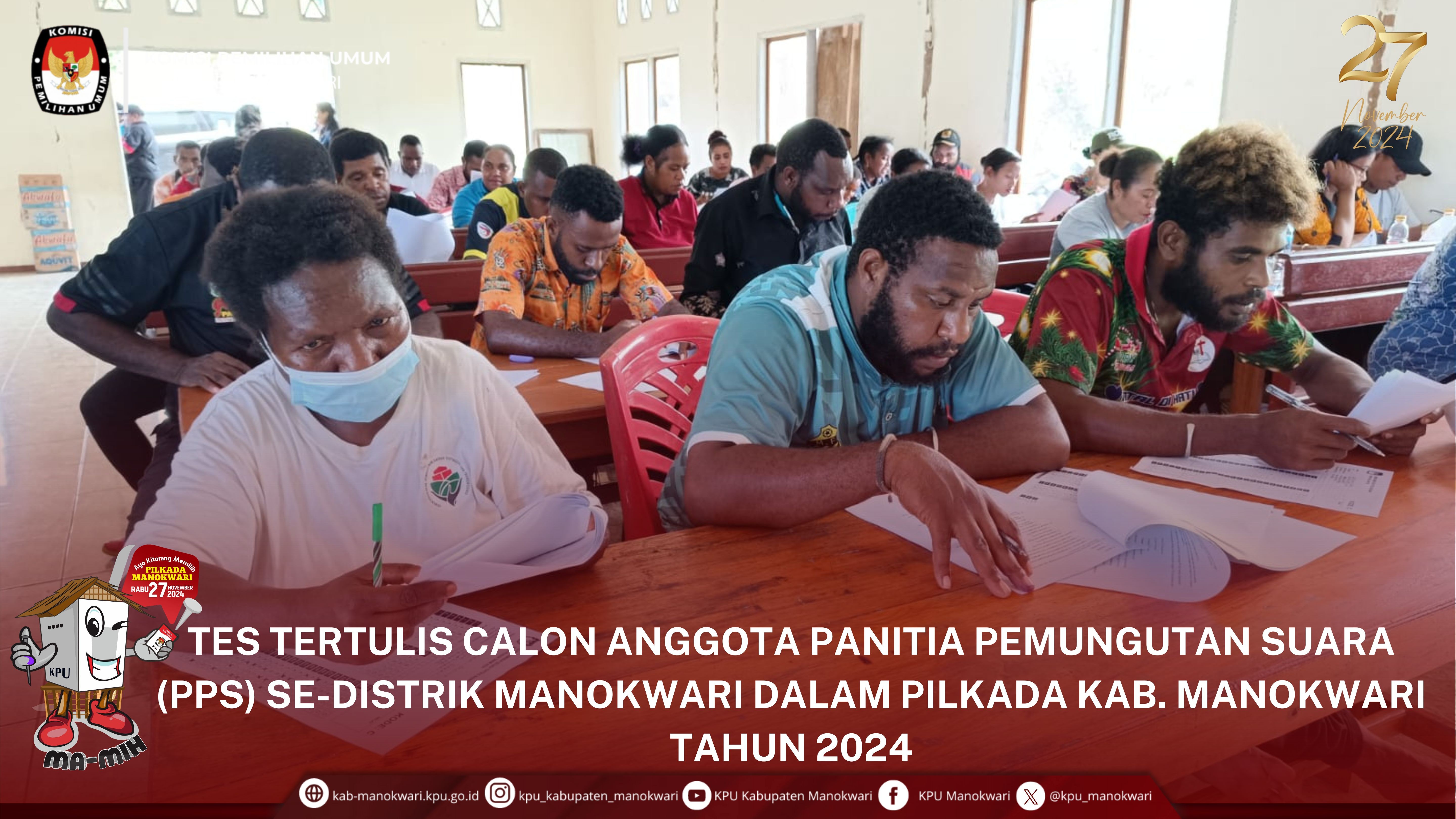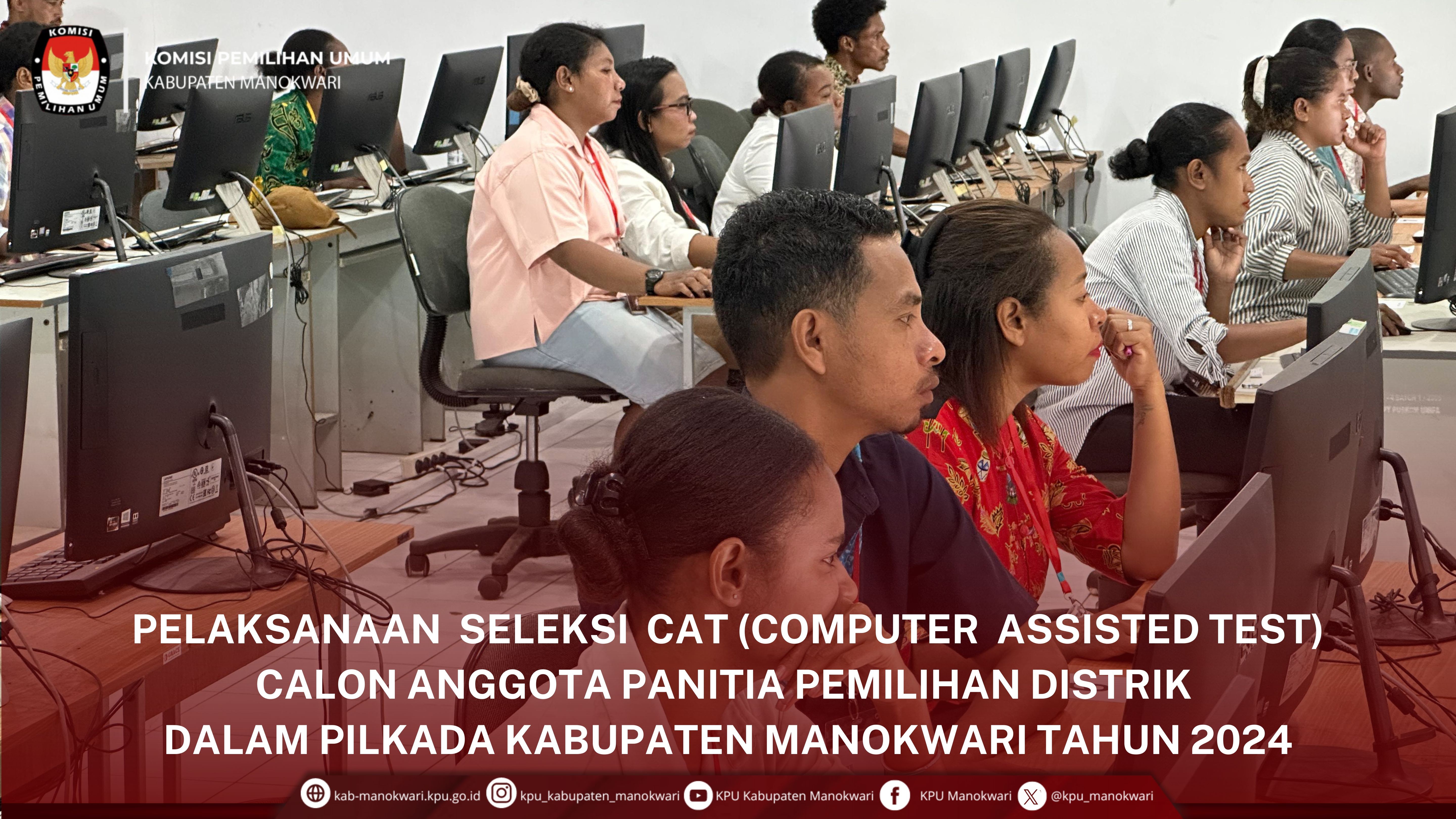 #PaceMace #TemanPemilih, Senin (6/5) KPU Kab. Manokwari melaksanakan Seleksi CAT (Computer Assisted Test) Calon Panitia Pemilihan Distrik Untuk Pilkada Tahun 2024 di Kabupaten Manokwari. Pelaksanaan CAT dilakukan di Laboratorium Komputer Universitas Papua (UNIPA) untuk 9 (sembilan) Distrik se-Kabupaten Manokwari.