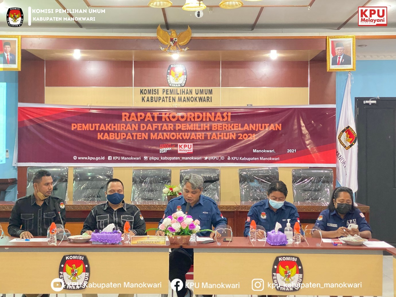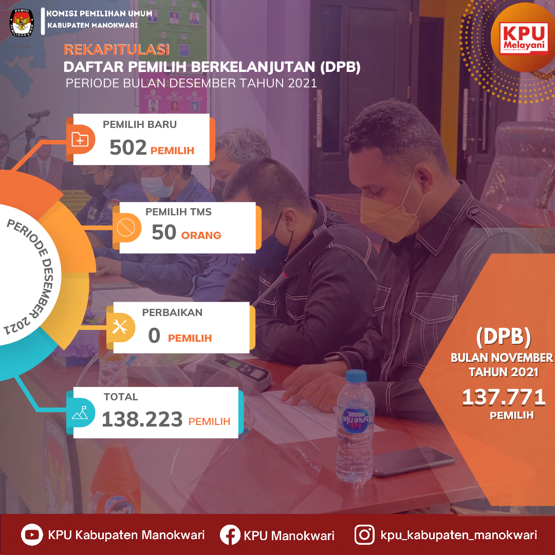 Bertempat di Aula Komisi Pemilihan Umum (KPU) Kabupaten Manokwari, Rabu (05/01), KPU Kabupaten Manokwari melaksanakan kegiatan rapat koordinasi Pemutakhiran Data Pemilih Berkelanjutan (PDPB) triwulan Desember 2021. Kegiatan ini bertujuan untuk melakukan pemutakhiran Data Pemilih secara berkelanjutan setiap bulannya.