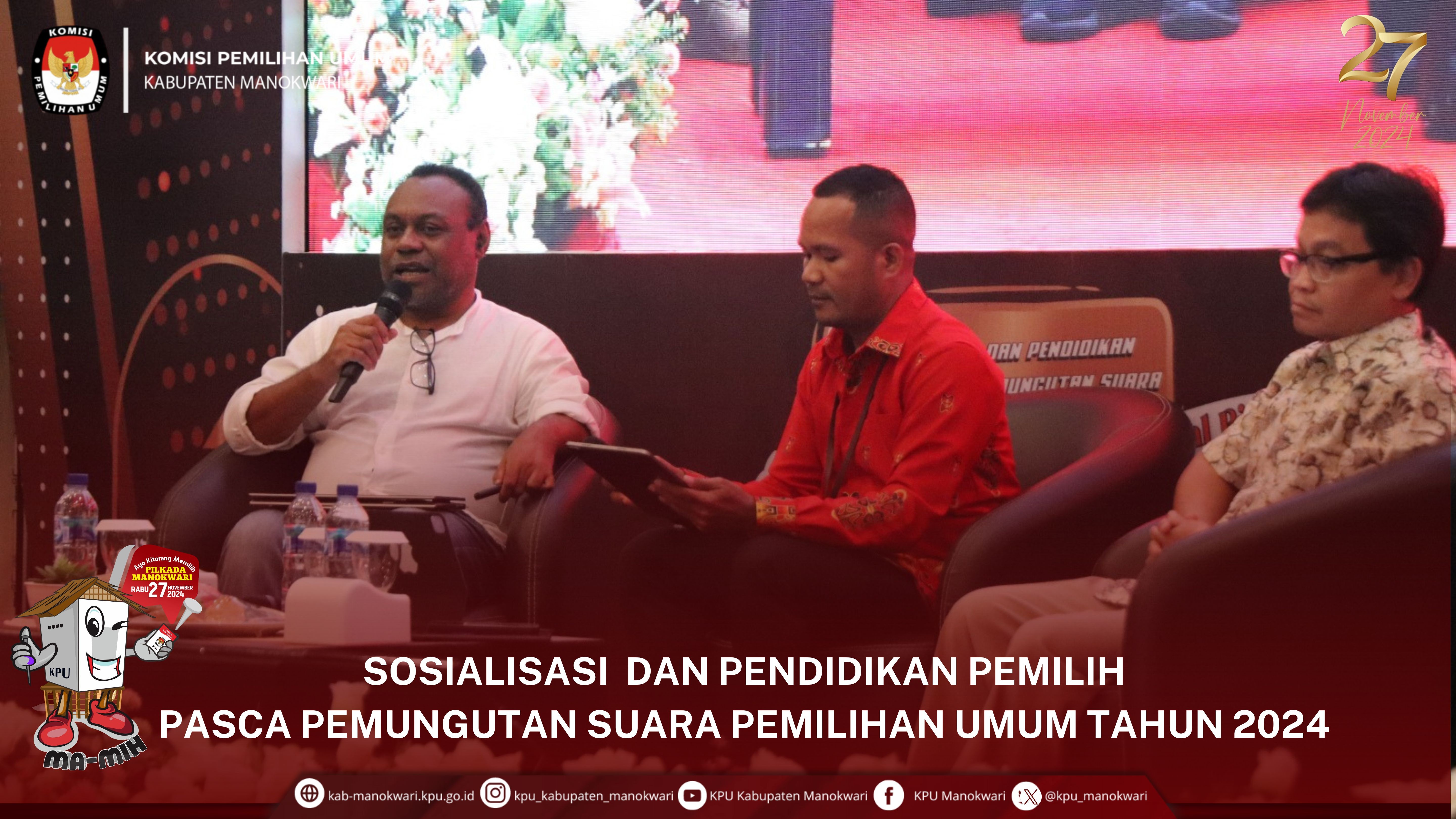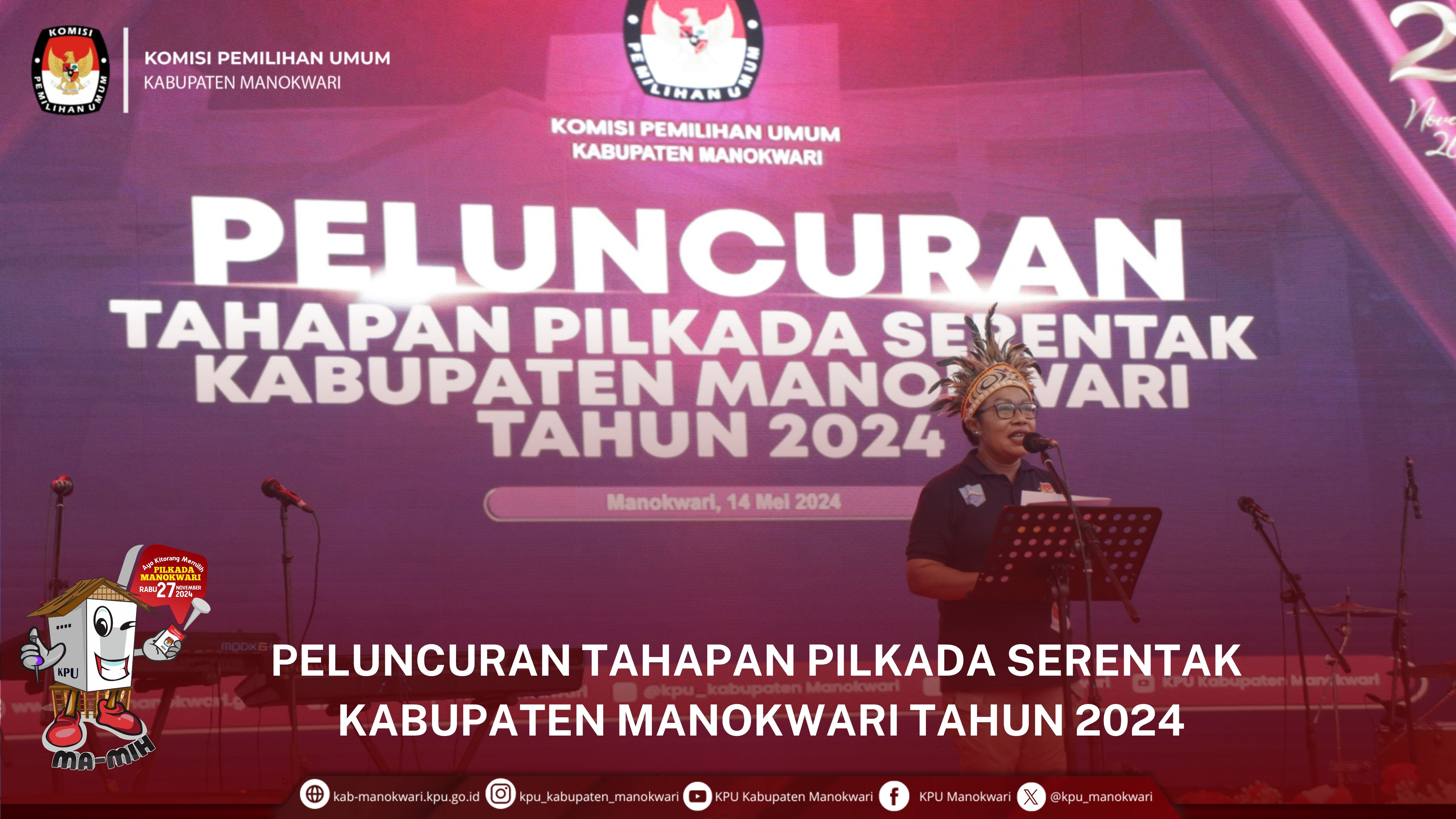 #PaceMace #TemanPemilih, KPU Kab. Manokwari pada Selasa (14/5) melaksanakan Peluncuran Tahapan Pilkada Serentak Kab. Manokwari Tahun 2024 Pukul 16.00 WIT s.d selesai bertempat di Ex. Kantor Bupati Manokwari.