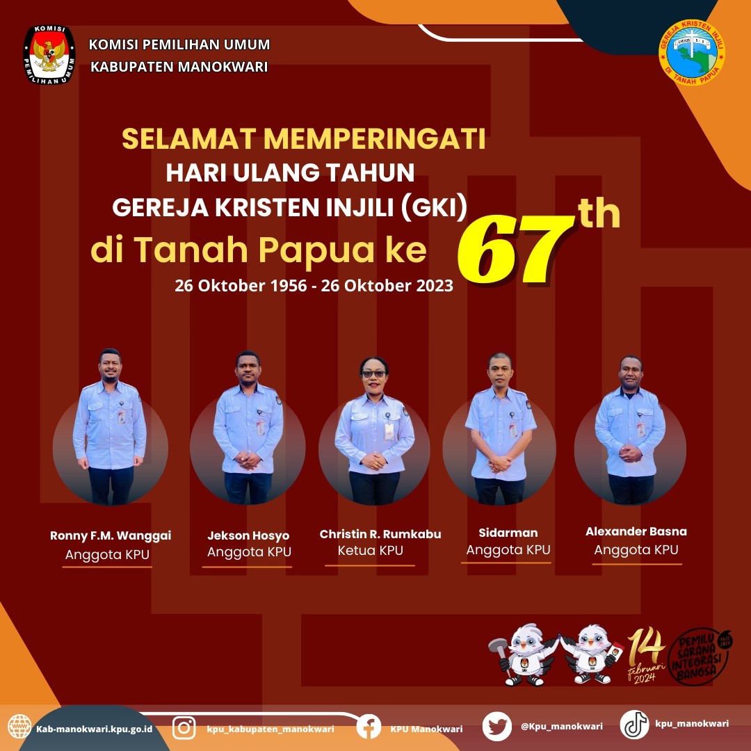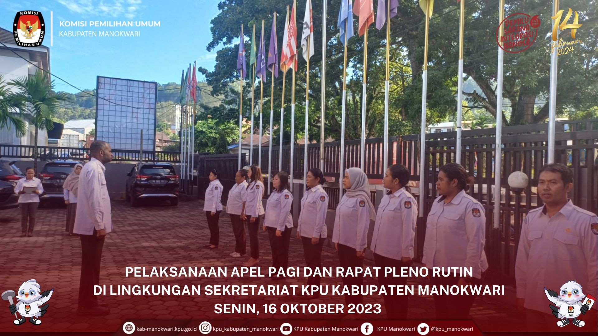#PaceMace #TemanPemilih Senin, (16/10) KPU Kab. Manokwari melaksanakan Apel Pagi. Apel pagi ini dipimpin oleh Anggota KPU Divisi Hukum dan Pengawasan, Alexander Basna, S.E.